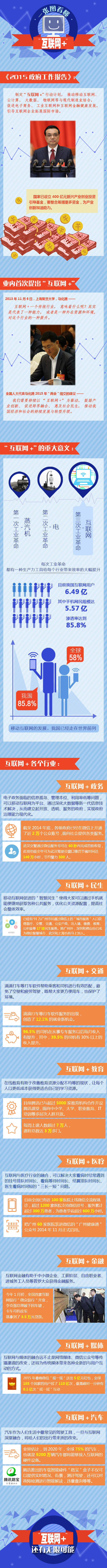 导语:2015年,“互联网+”写入李克强总理的政府工作报告,这意味着“互联网+”正式被纳入顶层设计,成为国家经济社会发展的重要战略。那么,到底什么是“互联网+”?互联网可以“+”什么?一张图帮你看懂。