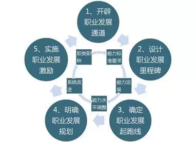 第二,人才内部供给链,以任职资格为主,辅以能力素质测评。人才内部供给类似产品在供应链中移动的情形,通过横向流动比如轮岗、纵向流动比如职位晋升或降级,从而形成动态人才库的有效循环。这其中,继任计划相当于确保及时交货,内部人才库和继任计划均需要基于任职资格,并兼顾员工能力发展,同时构建以能力为核心的人才管理动态循环(见下图),开辟职业发展通道、设计职业发展里程碑、确定职业发展起跑线、明确职业发展规划、实施职业发展激励。