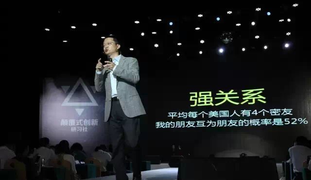 我们都说美国人比中国人善于社交,请问各位,一个美国人平均拥有多少密友?4个。这叫强关系,好处是执行力强、效率高。建立连接的关系叫弱关系,比如说我的朋友的朋友。
