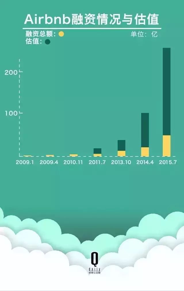 筹资15亿美元,公司估值达255亿美元——经过上月底的最新一轮融资,Airbnb成长为全球第三大创业公司,仅次于Uber和小米。