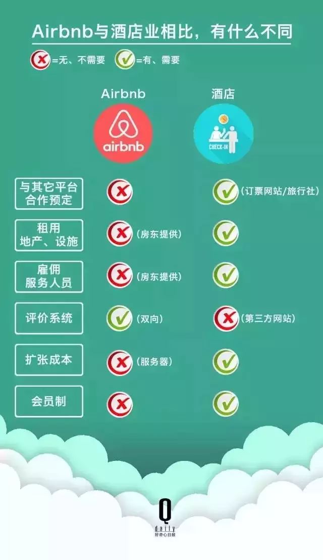 传统酒店的房间数是固定的,不管有没有人住,每天都有固定的房租和员工支出。是集中式的重资产模式,为此它需要保证低客房空置率来满足盈利;而Airbnb只是将分散的资源聚合在一起,它不承担任何成本。所以,只要有居民有空置的房间,这间屋子就可以成为一间客房,Airbnb 也就可以收取中介费用。