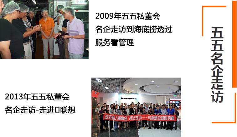 五五私董会:中国第一私董会,中国私董行业的领跑者,成立于2006年。专注于规模千万到上亿,上亿到十亿两个阶段的企业家成长。为企业家提供以“务实、分享、互助”为原则的深度实战交流平台。目前,已有200多位企业家会员,他们来自IT、软件、电子制造、仪器设备、互联网、汽车、服装、展览、金融服务等各个行业。过去8年间,五五私董会30多家会员企业成为细分行业领头羊,4家企业成功登录中小板、创业板。