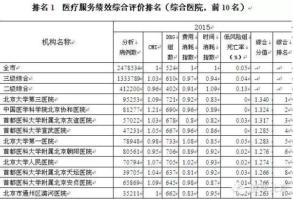 北京市卫生计生委昨天公布了《2015年度北京地区医疗机构及重点专科的住院医疗服务评价报告》,以DRGs(按疾病诊断相关分组)为工具,对北京地区主要的105家二三级医院,从医疗服务能力、医疗服务效率、医疗安全、专科服务能力等不同纬度,展开排名。