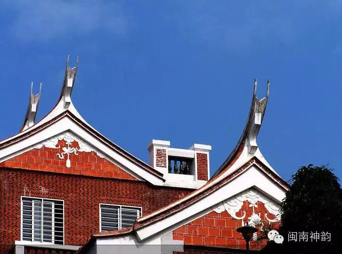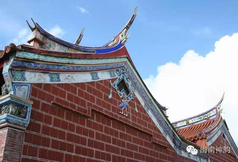 正是人们这些美好的祈愿让燕尾脊更加美丽动人,成为闽南乡间一道亮丽的风景。殊不知“燕尾脊”也有一定实用价值,即尖端放电。所以雷雨季节,闽南的古大厝常因有“燕尾脊”的缘故,而使居民少受伤害。
