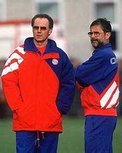德国当时正在讨论一个问题:能够让两名中锋一起出场吗?一个年轻的,一个老的,席勒和我。这次是席勒传中我头球破门。一瞬间,所有人都停止了争论,我和席勒组成了好搭挡。