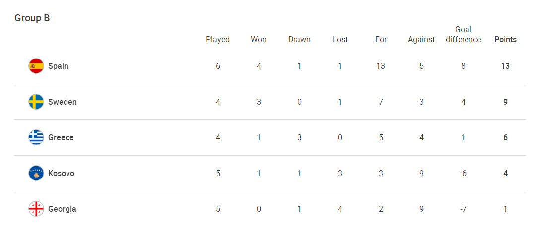 西班牙(4-3-3):23-乌奈-西蒙/6-略伦特、4-伊尼戈-马丁内斯、19-拉波尔特、14-雷吉隆(85’3-阿尔比奥尔)/8-科克(85’20-梅里诺)、5-布斯克茨、10-索莱尔(58’2-阿斯皮利奎塔)/11-费兰-托雷斯、7-莫拉塔(71’22-萨拉维亚)、21-福尔纳斯(58’17-特劳雷)