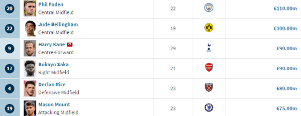 “德国转会市场”官网数据显示,贝林厄姆目前的身价为1亿欧元,仅次于队中另一名年轻球员福登。后者在曼城主帅瓜迪奥拉的“开发”下,逐渐从中路向边路发展,反而激发了自身的潜力。