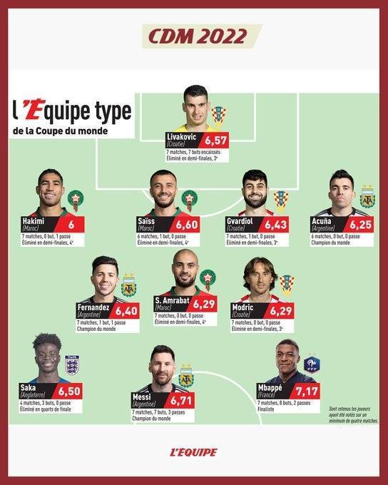 队报球迷评世界杯最佳阵:梅西姆巴佩萨卡领衔,莫德里奇恩佐在列