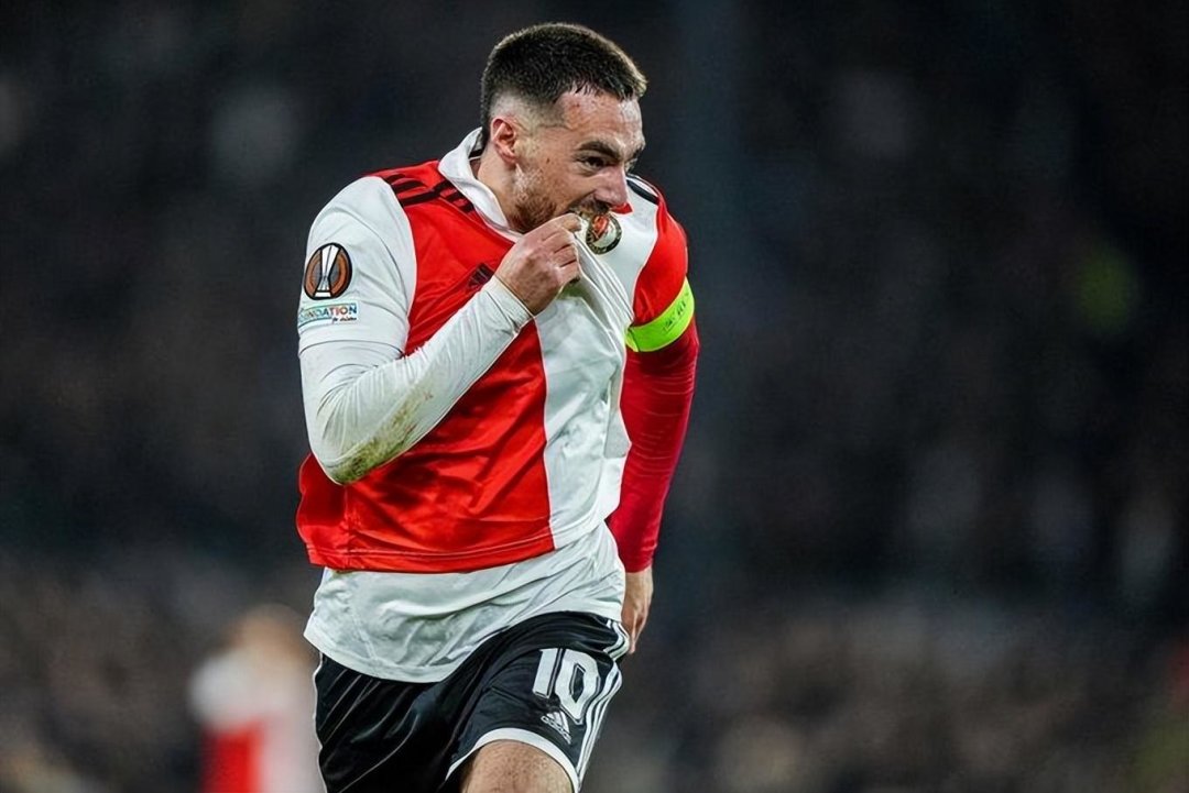 第38分钟,马科斯-洛佩斯左路下底传中,打在科诺普利亚的手臂上,裁判鸣哨判罚点球。柯克曲一蹴而就,完成梅开二度好戏,费耶诺德3-0遥遥领先,直接杀死晋级悬念。