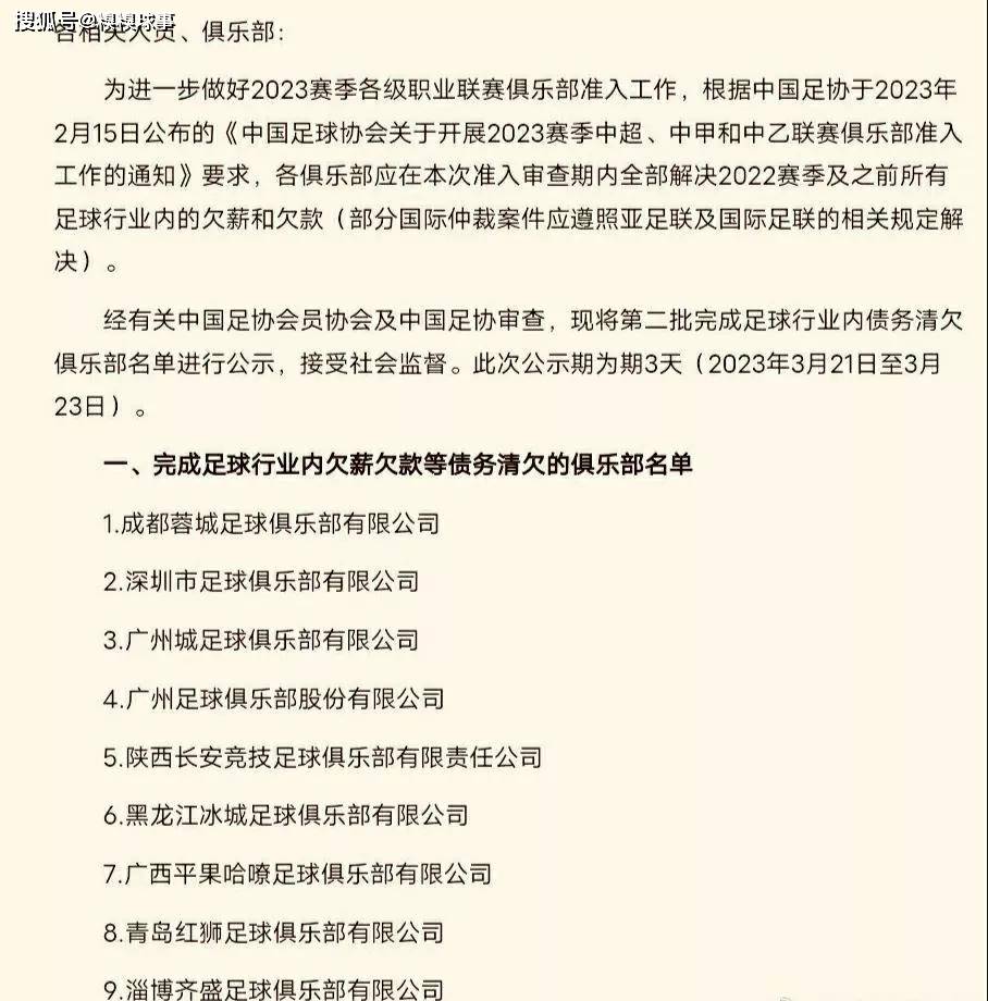 足协:中超18支球队皆清欠完成;媒报足协默许俱乐部准入文件作假