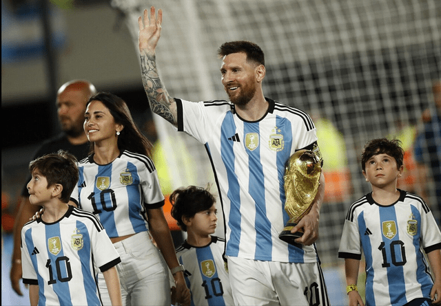 梅西在享受世界杯冠军,我们在享受有梅西踢球的比赛,乐此不疲!
