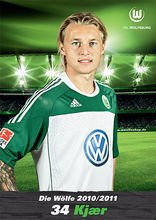 西蒙·克亚尔出生于丹麦小城赫森斯,曾效力于意甲巴勒莫队,现已转会到德甲沃尔夫斯堡队。这位年仅20岁身高达到1米89的中后卫是当今欧洲最炙手可热的新星之一。包括曼联、利物浦等大牌俱乐部在内都在关注他的表现。