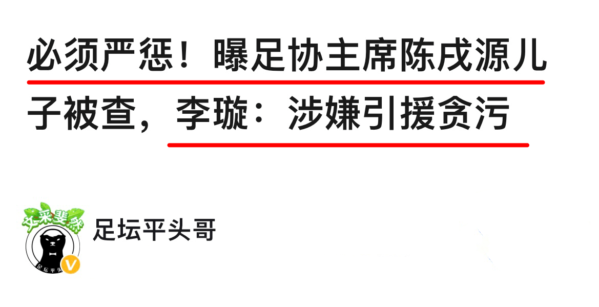 特别是当初他在上港集团担任董事长期间,他是如何华丽转身进入足协并且担任足协主席的?如今,随着足协书法家王小平的落网,更多关于陈戌源和足协内部的秘密被挖了出来。根据媒体人“足坛平头哥”的报道,陈戌源的亲生儿子也即将得到严惩,因为记者李璇指出陈戌源的公子{下称小陈}有着引援贪腐的罪名,这会让他身败名裂。