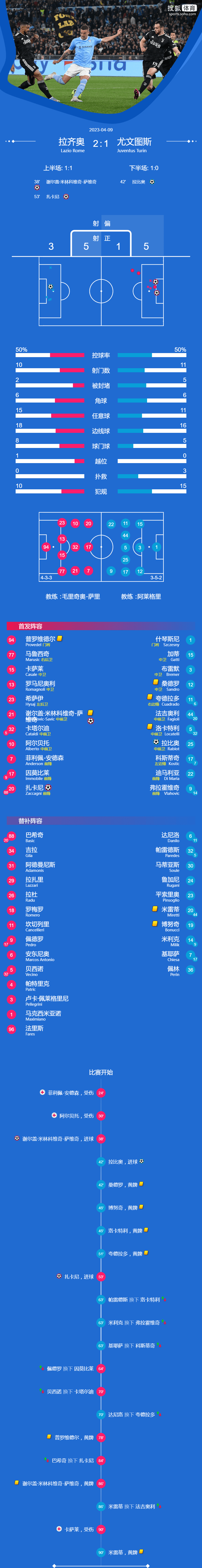 尤文(352):1-什琴斯尼/12-阿莱士-桑德罗、3-布雷默、15-加蒂/11-夸德拉多(70'6-达尼洛)、44-法乔利(87'20-法比奥-米雷蒂)、5-洛卡特利(63'32-帕雷德斯)、25-拉比奥特、17-科斯蒂奇(63'7-费德里科-基耶萨)/22-迪马利亚、9-弗拉霍维奇(63'14-米利克)