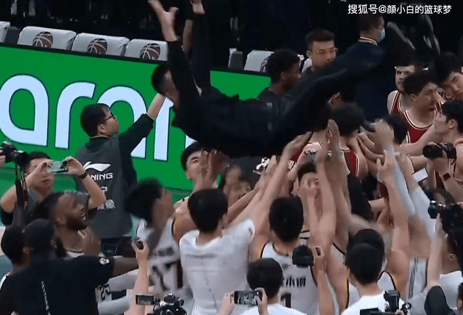 全队将杨鸣指导直接抛向空中,这是属于杨鸣指导的时刻,他在最近的两年里帮助辽宁两次拿下CBA总冠军。