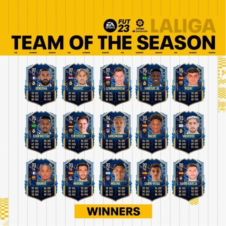 携手EA SPORTS,由球迷、球员和专家共同投票,2022/23赛季西甲最佳阵容揭晓