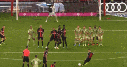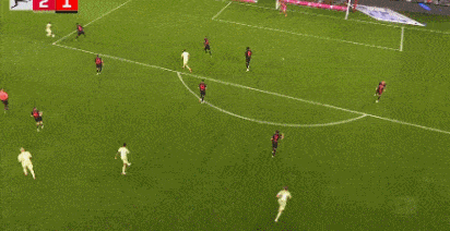 第25分钟,格里马尔多主罚任意球直接破门,帮助勒沃库森1-1扳平比分。