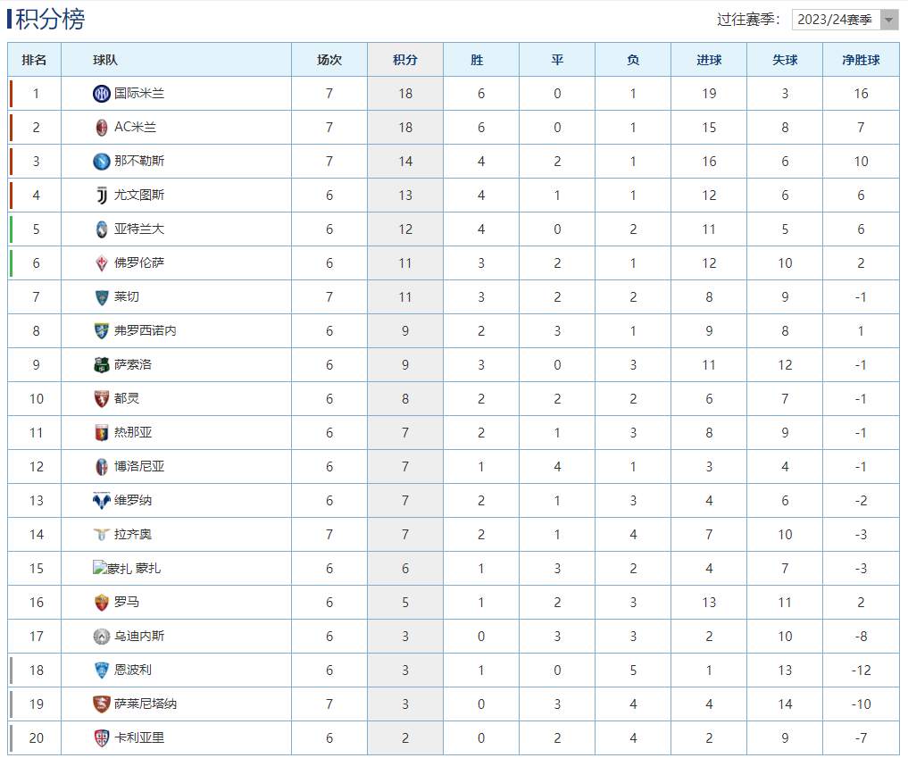 意甲最新积分榜 |