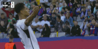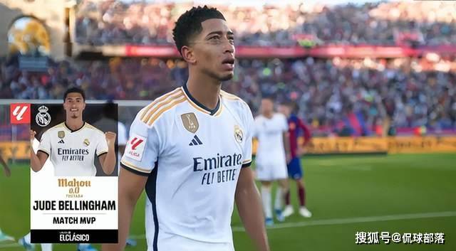 贝林厄姆完成自己的霸气庆祝动作:双臂举起,犹如君临天下,再度成为皇马赢球的英雄。