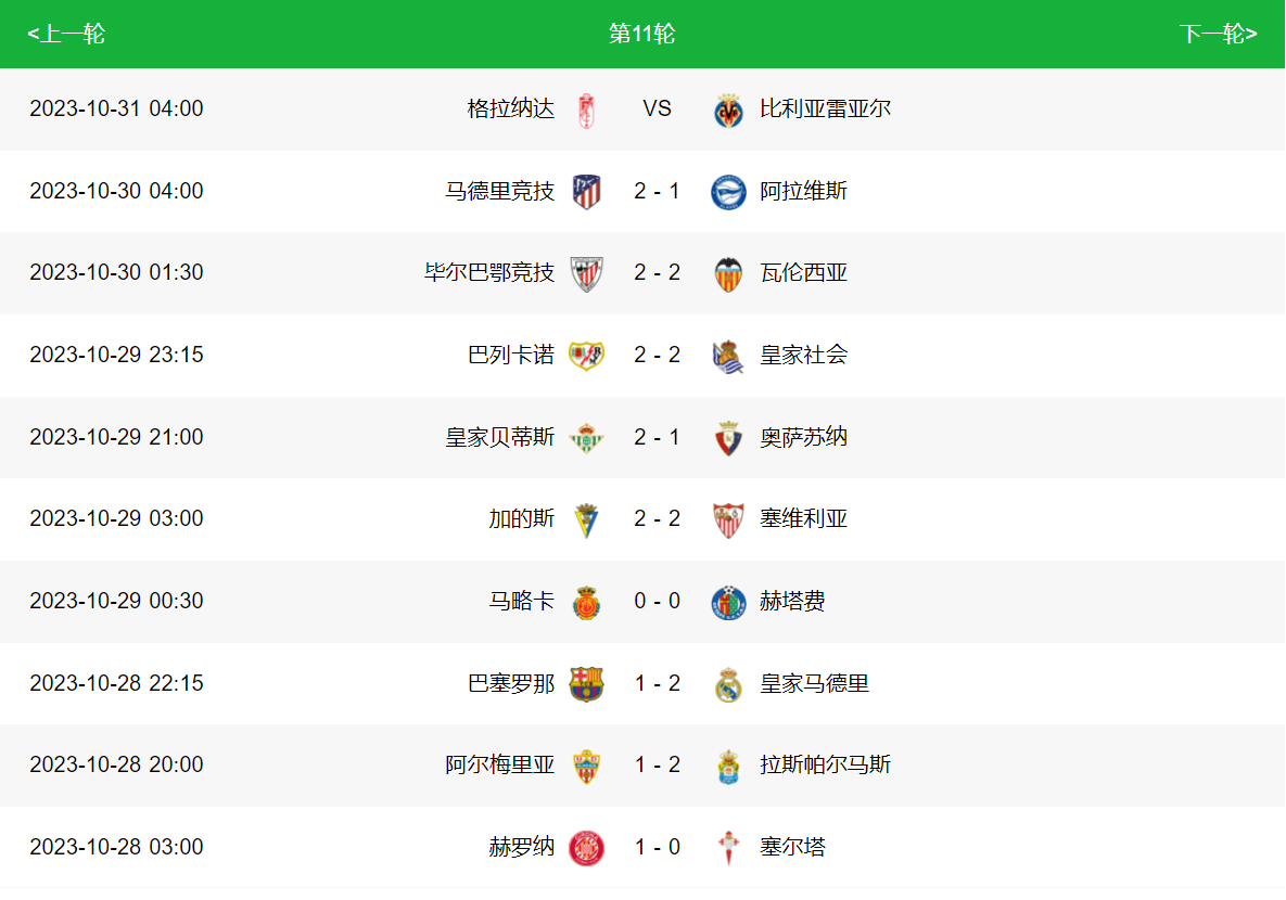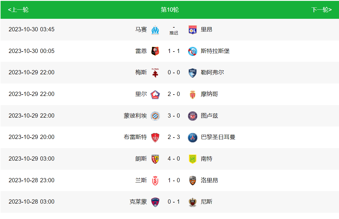 2023/24赛季欧洲五大联赛,截至10月30日,西甲进展到第11轮,英超、意甲和法甲来到第十轮,德甲打完第九轮。上赛季的西甲冠军巴萨、英超冠军曼城、意甲冠军那不勒斯、德甲冠军拜仁和法甲冠军巴黎,这5支卫冕冠军球队皆不在榜首。另外,拜仁、勒沃库森、多特蒙德、热刺、阿森纳和尼斯都保持不败。
