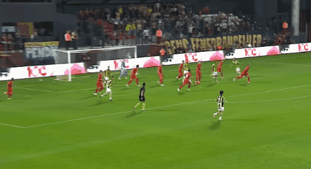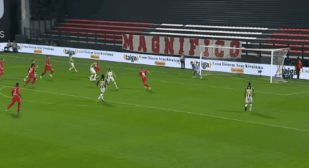 第42分钟,费内巴切再进1球,希曼斯基开出左侧角球,卡赫维奇凌空抽射,皮球经过武科维奇的后背折射入网。