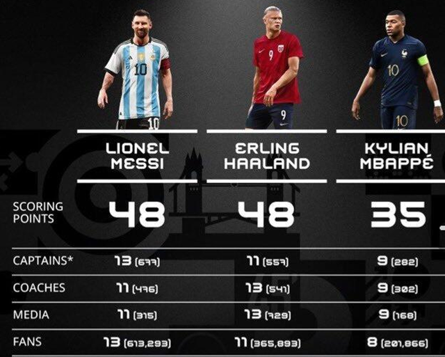爆冷!梅西当选世界足球先生,和哈兰德同分,队长票数13-11获胜