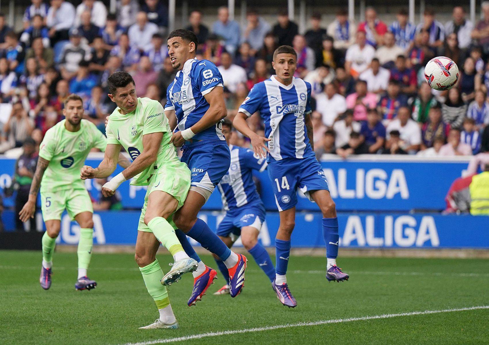 西甲-莱万32分钟上演帽子戏法费兰伤退 巴萨3-0阿拉维斯