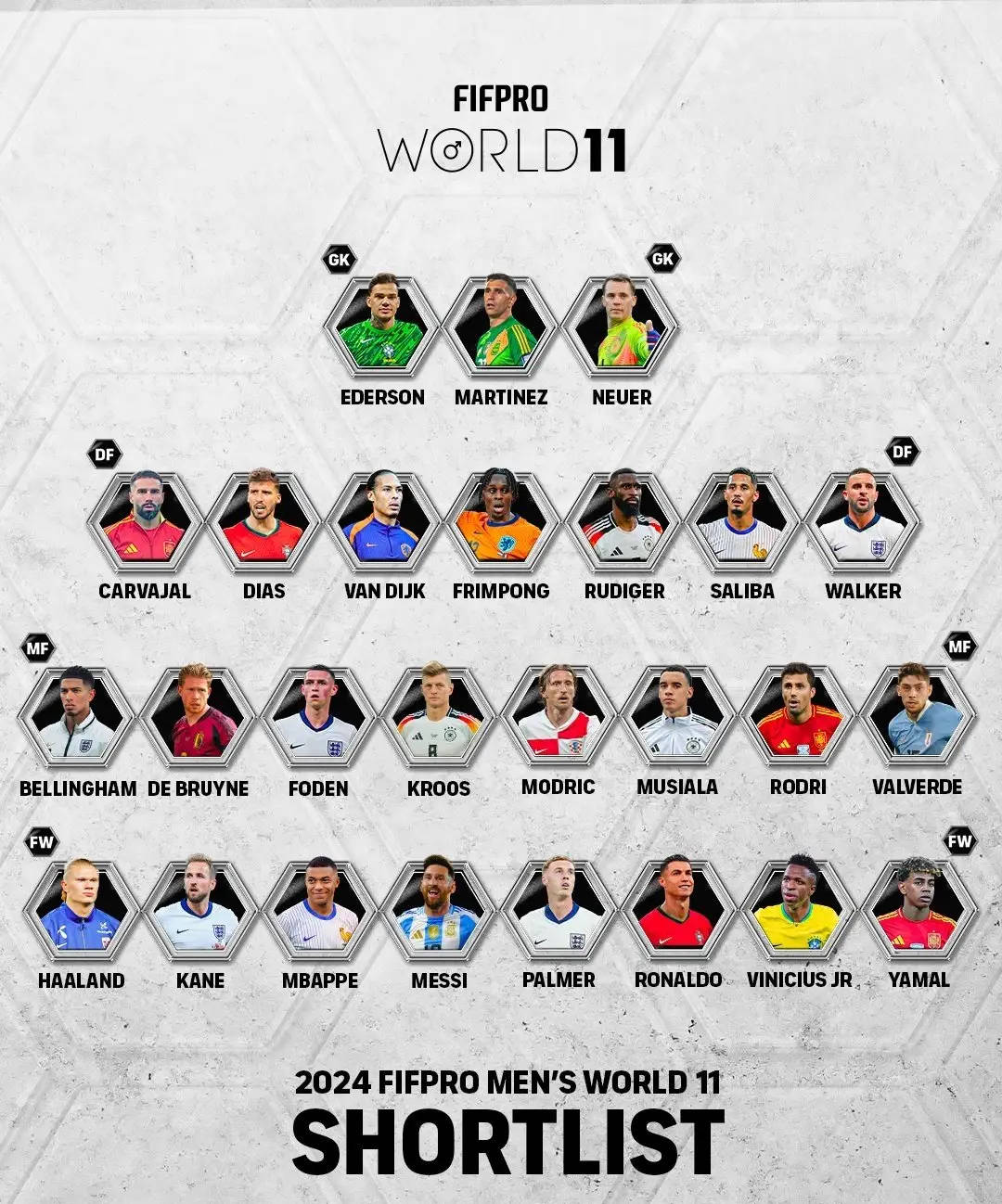 FIFPRO官方公布年度最佳阵26人候选名单: