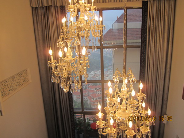 客厅用了三个吊灯,三心两意之象,这种吊灯宜用在酒店催桃花,住家不宜用,灯泡又坏了几个不吉利