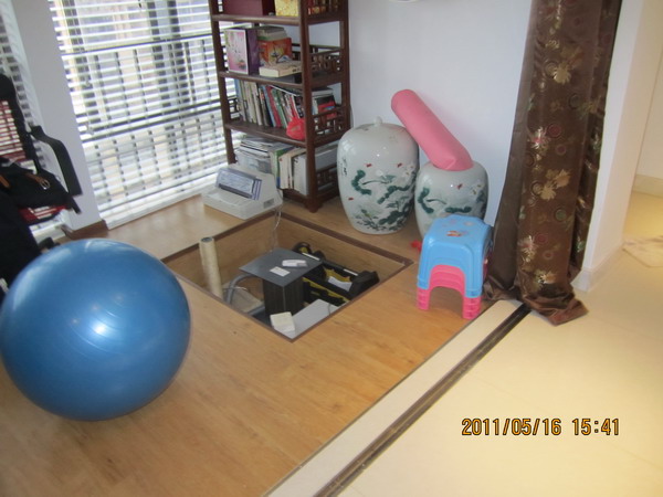 财位有个坑,易破财,屋主想做成升降茶几,空在哪里成了一个坑