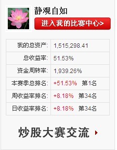 我这两个周炒股比赛怎么会突然这么顺起来,排进第一名保持好几天,呵呵!是菩萨显灵了吧。