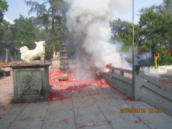 开车刚到了盘古王庙,接到善信胡梦静打来电话,她到了五台山,下午一点多钟在五台山见到了一条黑蛇,我们在放生蛇她遇见蛇也算巧遇......,她被蛇仙折磨得很惨,建议她到五台山焚仙寺(大仙总部)拜拜。
