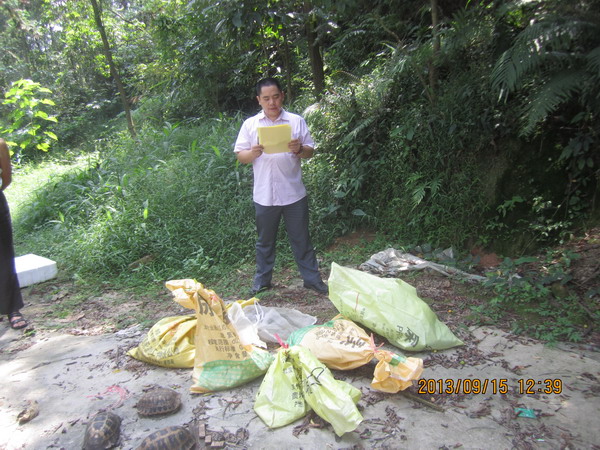 放生象龟三只10.2斤X90=918元 ,十三龟一只4.5斤X80=360元