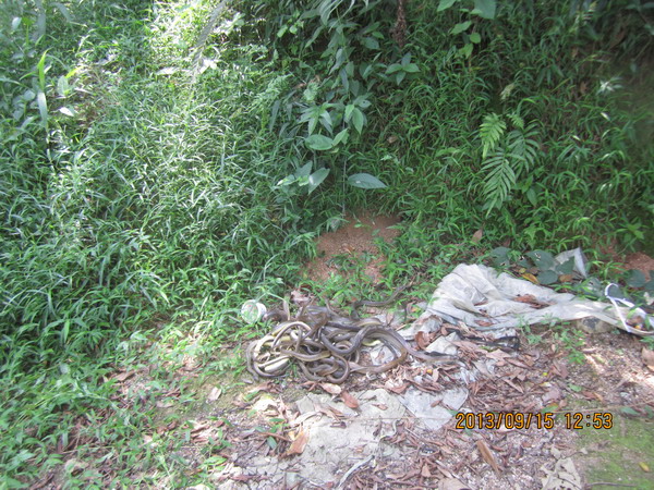放生后在半山的农庄用餐,13人餐费508元,购蛇时停车费20元,天气太炎热,饮料费80元。