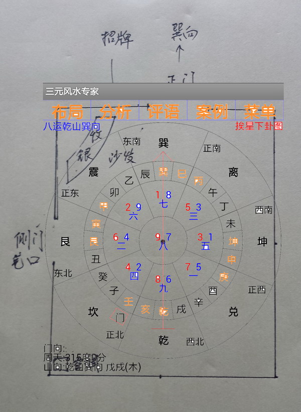 二丶巽向门开在乙辰位,艮向门开在寅甲位,都不合法犯煞,从宫位来说在东方能纳偏财之气,能旺一下。门路不吉易招是非破财。