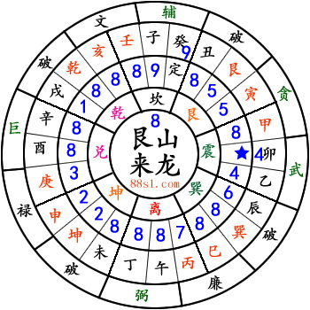 丙巳位也不能用,只有用未位了!未位是文曲,不理想!幸财星8飞临,可开通财路能用,又能化解流破后天加巨门,再看杨公挨星法,未位8旺气到,开门大吉。