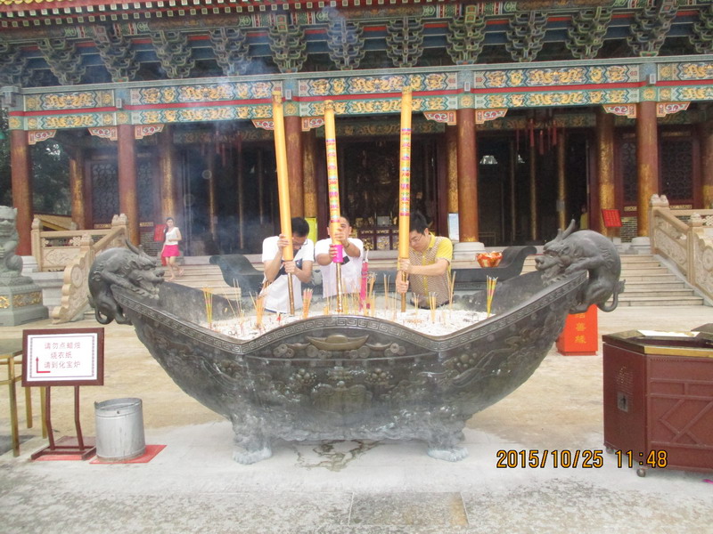 财神金殿上三支高香祈福,大家见地面就知下起了小雨,神灵送财到。