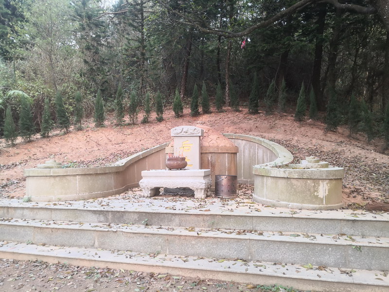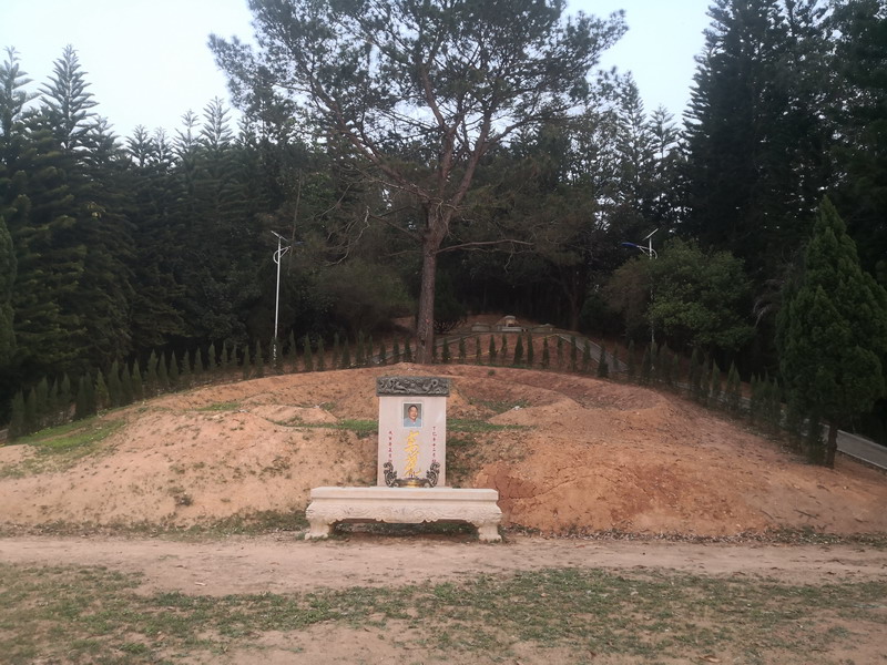两侧均栽种有苍翠的柏树。整个坟墓气势恢宏,令人叹为观止。在每个平台两侧,均分设三条阶梯通道,石阶之外,又有石阶,两边循环相通,平台下有的还设地下室。更绝的是,坟墓所有的护栏,均是经精工雕琢布满龙凤的花岗岩石刻。每个平台均用大块淡绿或灰白的优质大理石镶嵌,平台两侧各置一怒目含珠的醒狮。此坟在2002年已被军队来铲除了建筑物,不过坟山却没有破坏到,现在保存得还很好。