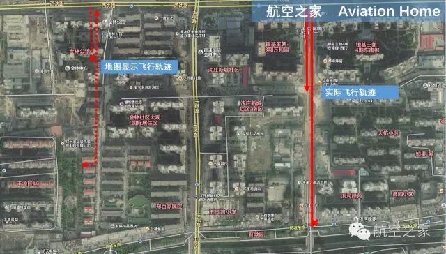 飞机记录显示的最后记录表,飞机失联高度51米,但是这张图完全南辕北辙。从下图我们能看到红色线为实际飞行线路,虚线为飞行地图飞行线路。
