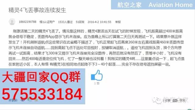 大疆回家QQ群:575533184,相信大家的力量,倒逼大疆完善自己的产品,推动无人机产业技术发展。