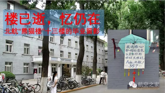 于是乎,想起了文头的唏嘘,找到了淡淡伤感的缘由,这栋楼拆了,拆的不是一栋楼,而是59年间无数北航学子美好爱情的见证,大学青春的记忆。也许会有新的、更豪华的“熊猫楼”矗立在北航校园,但是属于我们这一代北航人的青春记忆永远珍藏在消失的瓦砾中。
