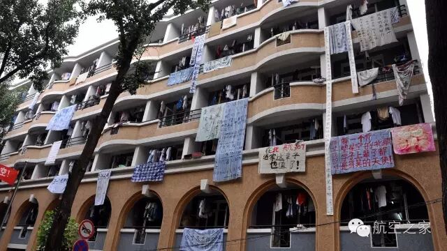记得离校那会北航毕业生流行挂床单,不知何时兴起这股风潮,于是乎一夜之间宿舍楼的窗户上挂满了各式各样的作品,离别的校园里荡漾着肆意释放的青春。这股凶猛的床单文化潮尤以2010年为盛,住隔壁的男生自己按图索骥吧。