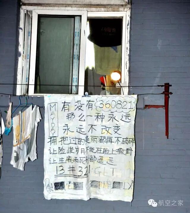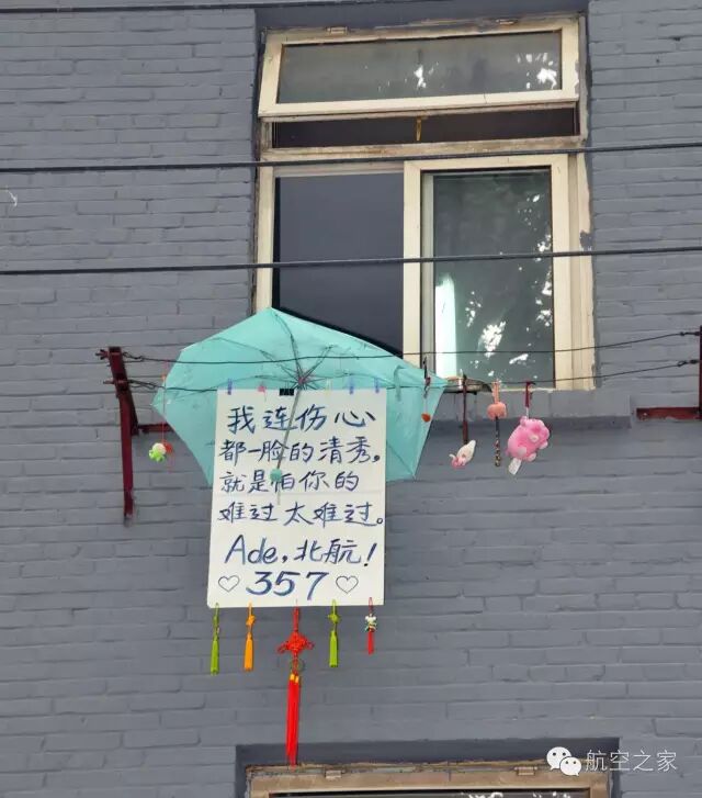 图7、有没有那么一种永远,永远不改变。拥抱过的魅力都不在破碎,让险峻岁月不能再脸上撒野,让生死离别都遥远。——13号楼321,PS:民航特色“MAYDAY”,这是多么一种生死离别……男朋友飞院的吧,也该升机长了。