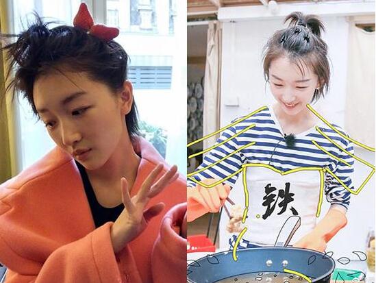 吴昕的发型变化也是蛮大的,曾经挑战过高俊熙式的黄毛短发style,然而造型有些失败后迅速调整了自己的发型方向,慢慢染回了自然黑,现在终于把头发留长了!各种扎发也是美翻天!近期,吴昕从时装周上找到了发型灵感,扎起了低马尾,并将马尾辫编成了个性小辫子;刘海更是处理得非常到位,将剩余在耳侧的刘海各编一条细细的小辫修饰自己略宽的两颊。短发过渡期时的头发会略显凌乱,对于发量超多的女生,更是缺失了发型的层次感。SO,这款发型比较适合发量较多的女生,可以将大发量扎起,左右预留的刘海发量一定要少,否则会很显土气。