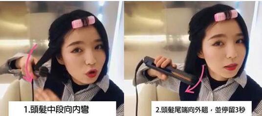 造型技巧:只需使用直板夹,在头发中段的位置向下夹内弯,接着发尾的部分则将直板夹改成外翘方向,并停留3秒,让发梢的外翘效果更明显!按照这样的步骤就能夹出超可爱的短发造型,而且也不会让人觉得没整理哦!