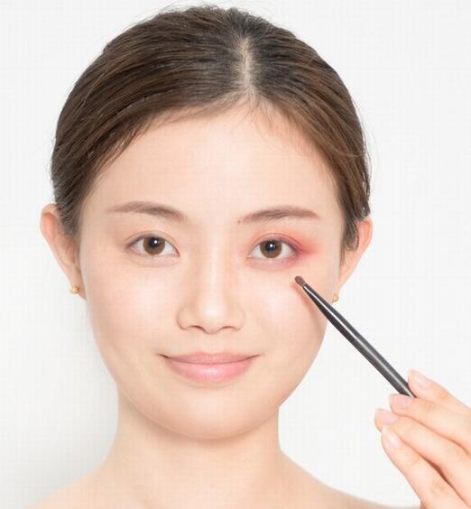 4.用剩余的粉在下眼尾后三分之一处加深轮廓感。