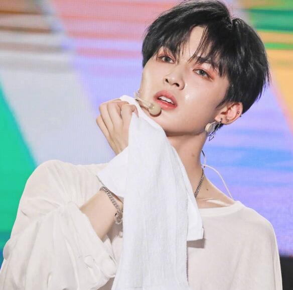 仔细放大眼妆,朱正廷就像漫画里走出来的仙子一样,眼妆深邃帅气,像混血一样,太精致太好看了,而且他流了那么多汗,眼妆都没花。