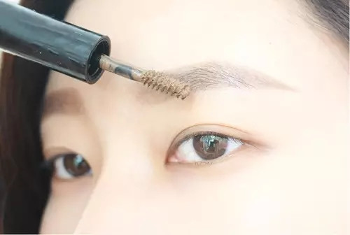 Step2:用棕色染眉膏,在眉毛上涂抹,将眉毛之间的空隙填满,塑造更有型的眉毛。