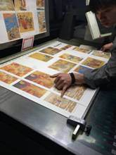 美编完全满意后,需要在版上签字,之后机长会把这版挂起来,以它为准,每印一定数量,就抽查几张,核对颜色是否一直准确。