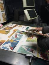 几经周折,我们跟16本书的绘者都签订了出版合同。但因为这些作品年代久远,作者们的原稿都未能留存下来。北京仅存的三家拥有电分机、可以电分(类似于扫描,但比扫描高大上得多)图画的公司也被我们找到了。